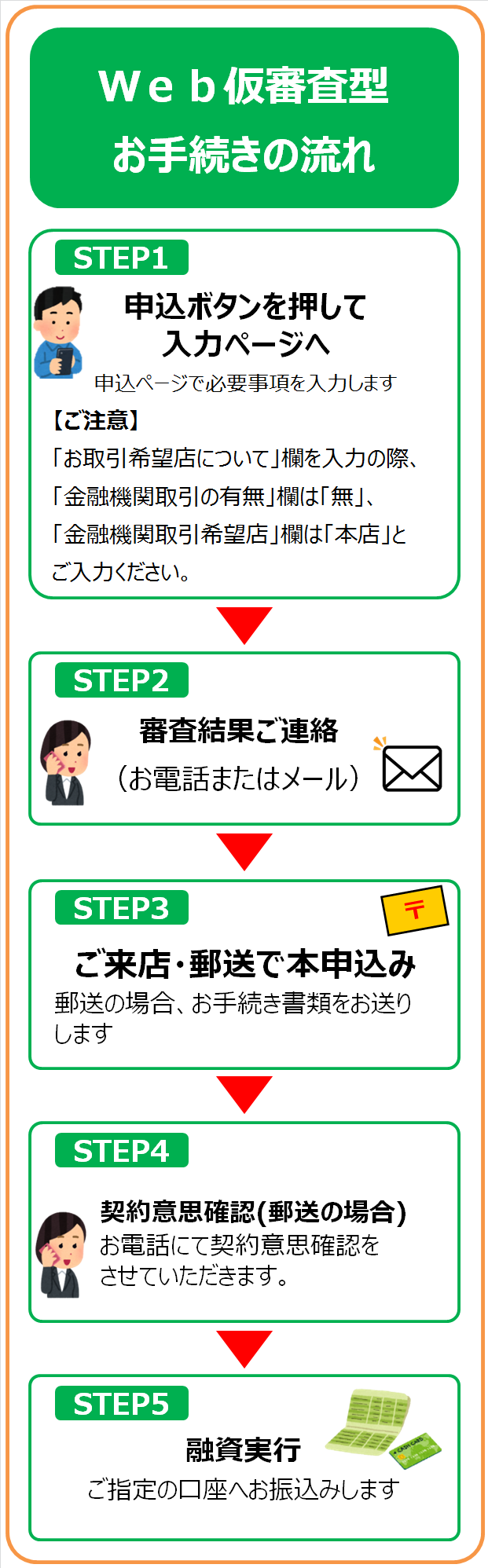 Webお申込(仮審査)後、郵送またはご来店での正式な手続きが必要です。