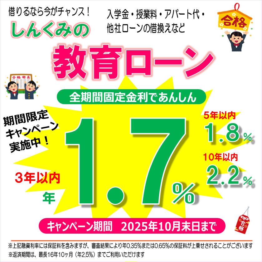 ※当信用組合にてお借り入れ中の翔学ローン残高と合算(借換)でのお申込みをご希望の場合は、お電話またはトップページの「お問い合わせ」フォームよりご連絡ください。